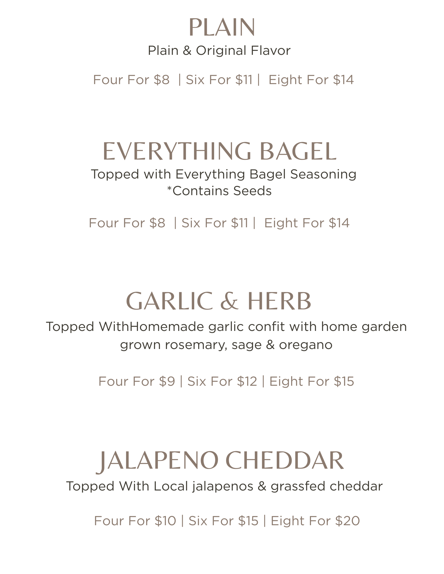 BAGEL MENU